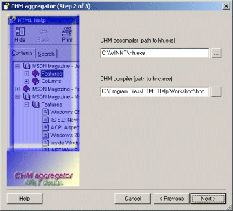 In step 2, if HTML Help workshop is not yet installed on your machine, then a download button appears. If so, make sure to download and install HTML Help workshop before you go on. You can download the component here[^] (3.5 mega-bytes). In the remainder of this section, we assume that HTML Help workshop is installed, so the paths for the compiler and the decompiler are filled with existing file names.