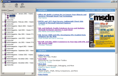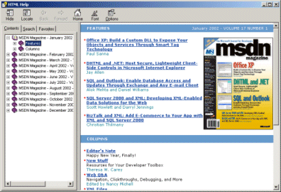 In the pic above, it's great to be able to search content in a single place to look for but there is a minor glinch to it. As you can see in the topic hierarchy on the left, a tiny Subscribe CD entry seems to duplicated after each MSDN Magazine issue and so kind of takes the space for no reason.