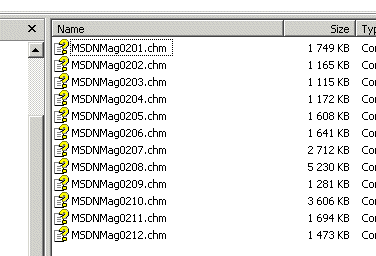 The trouble is that whatever I am looking for I have say 4 years of MSDN Mag content, and I can't seach the content in it with a single action. 4 years of content is 48 CHM files. So if I need to look up a code snippet, an explanation, or anything related to a particular topic, I have to open by hand each of those 48 files, and for each being open, click on the Search tab, enter my keywords, wait for the search to finish, and then navigate the results. All this must be done over and over again.