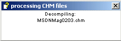 What's done then is that we extract all the content from the individual CHM files. A modeless box shows the progression as in :