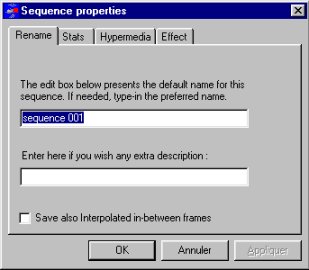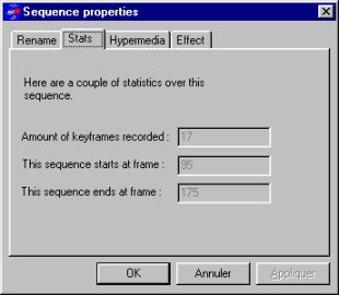 To associate an hypermedia link information or visual effect information to a sequence, just click on the properties icon in the sequence toolbar, or press the CTRL-R key.