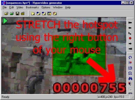 We give you the hint to slower down the video using the frame rate slider. So in record mode, you have all the time to move and stretch the active hotspot while the video is playing.